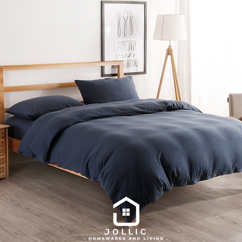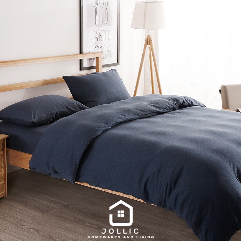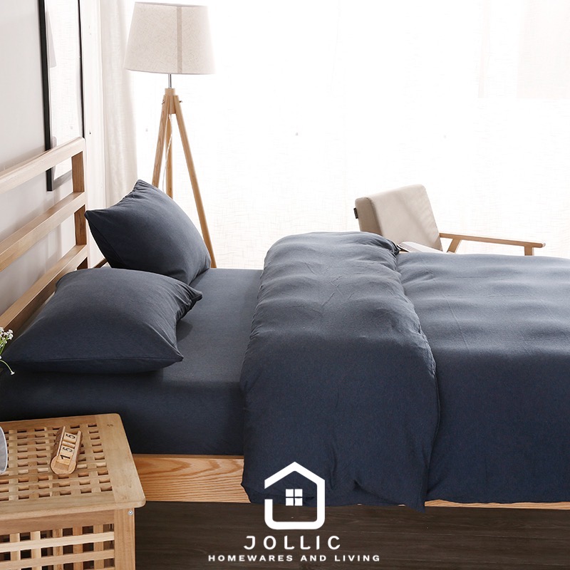 深邃沉穩的海軍藍天竺棉床包組,嚴選日本出口等級針織純棉。