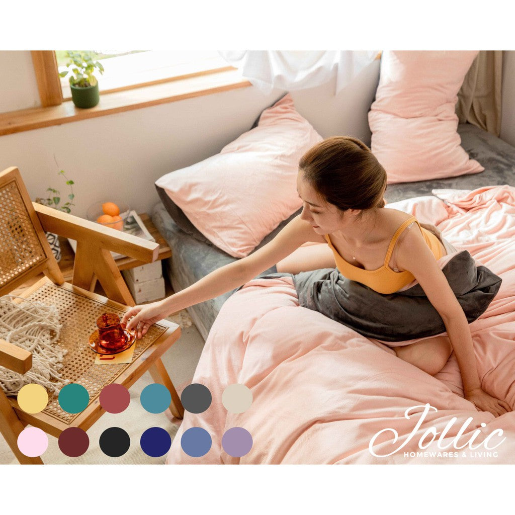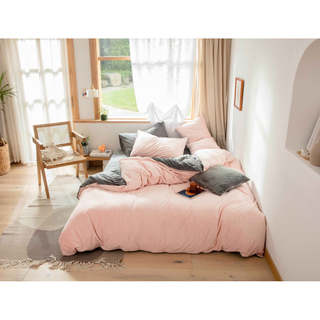 Jollic 冬天床包 粉紅色/粉灰床包/雙拼/雙色床包 單人/雙人/雙人加大 加厚/刷毛床包/絨布/天鵝絨床包/兩用被
