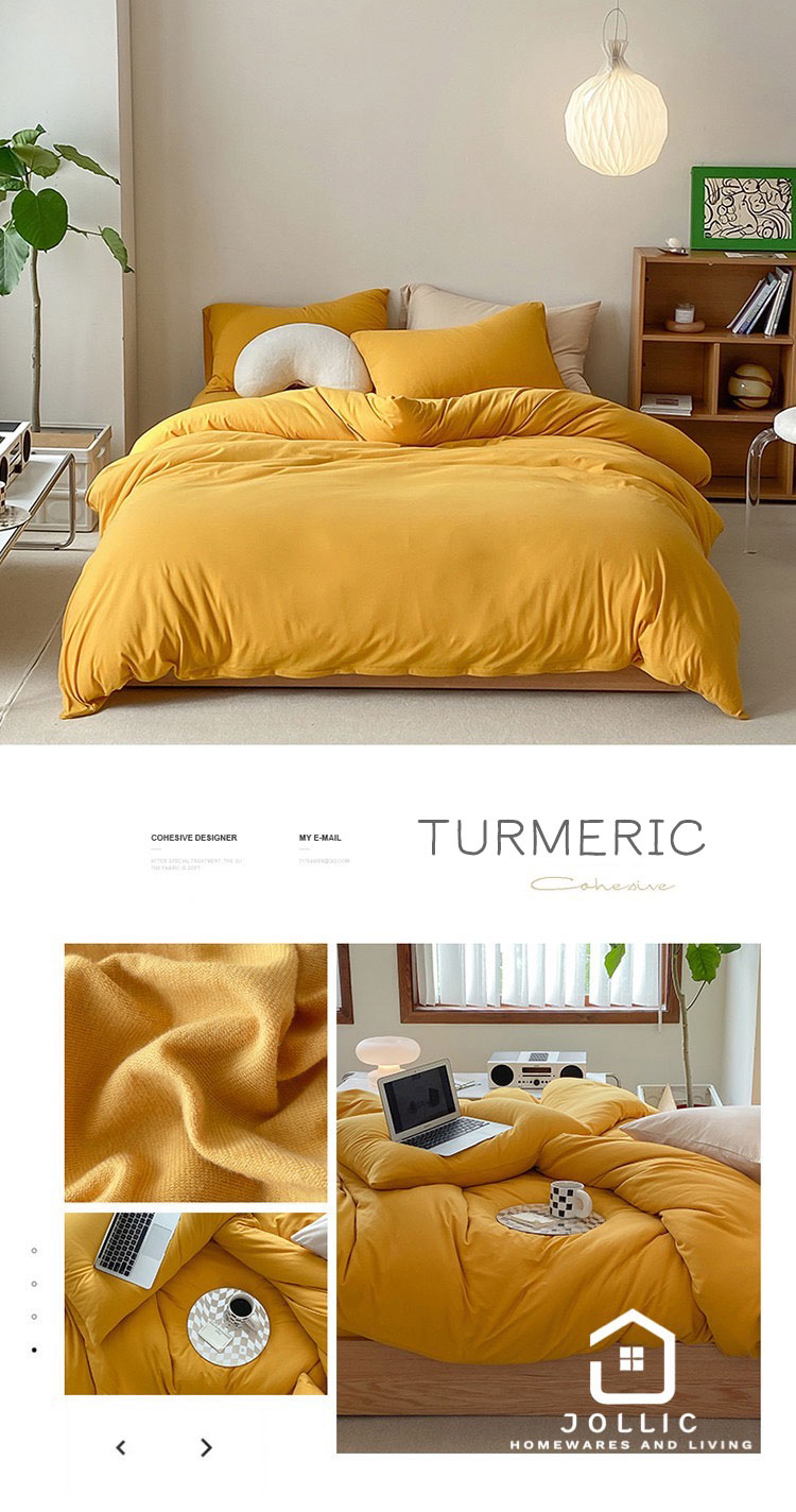 Jollic♡ 多色可選 薑黃色/黃色/薑黃/土黃色/森系 針織棉床包組 床包四件組雙人加大/單人加大 被套四季被套
