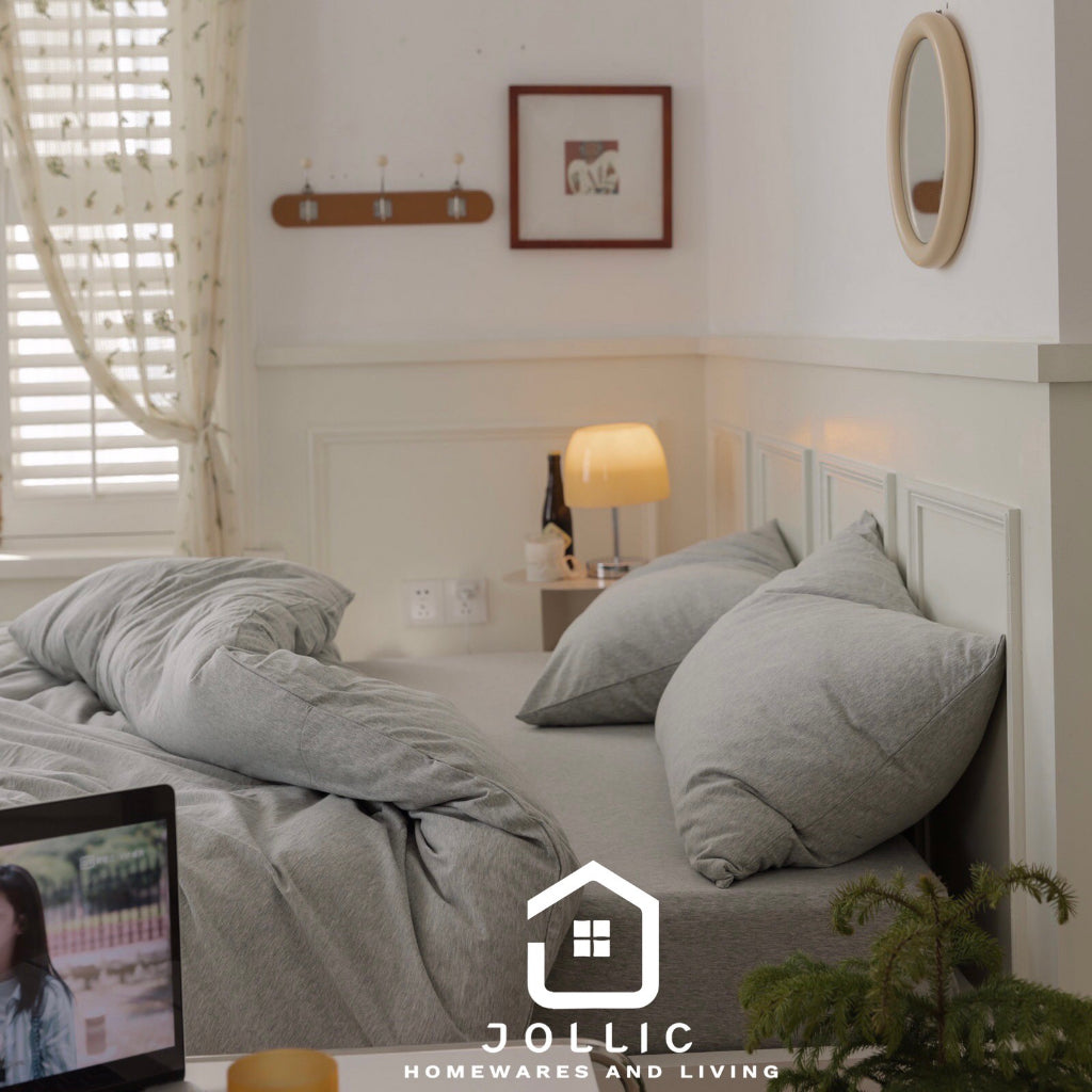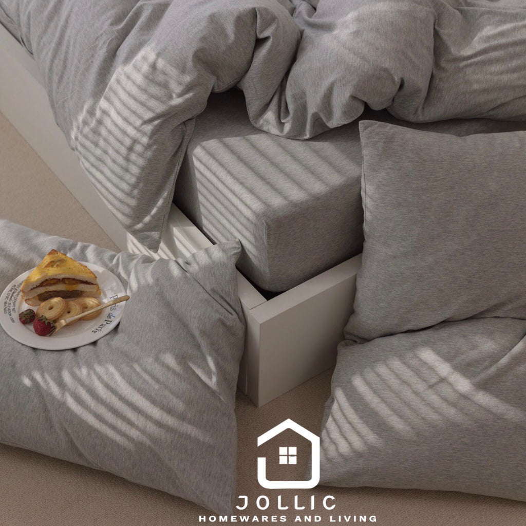 經典麻灰色天竺棉床包組|100%純棉針織棉,柔軟親膚、四季皆宜。