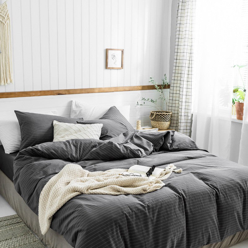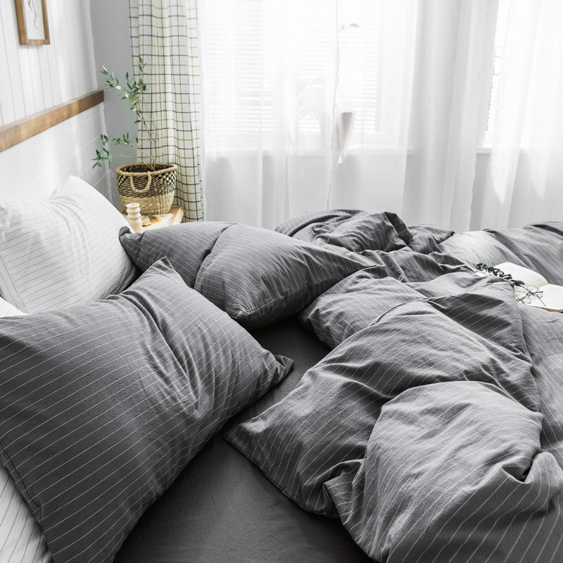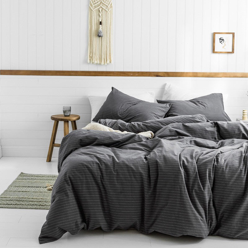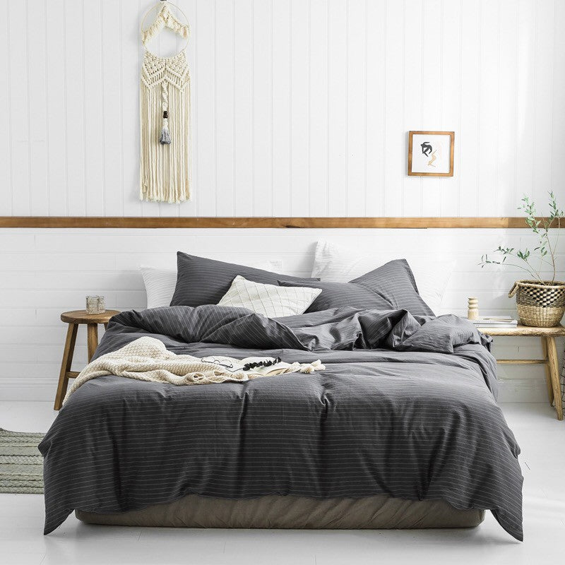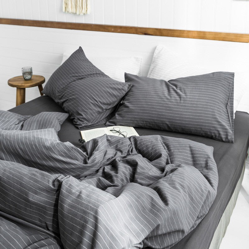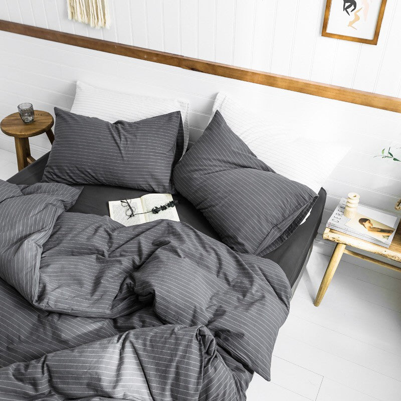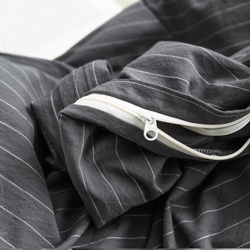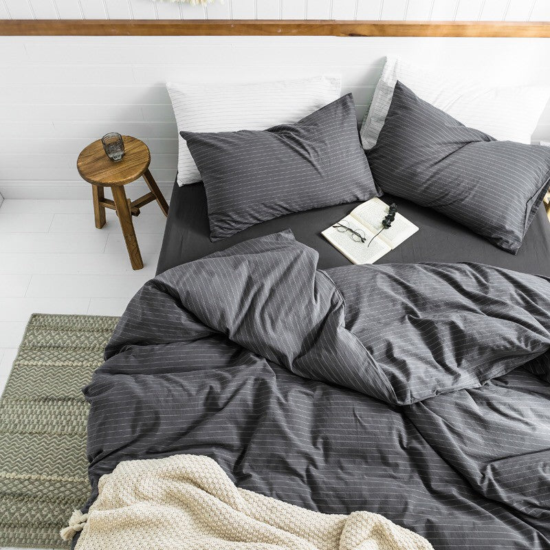 Jollic♡ 100%純棉 水洗棉 黑色白色灰色條紋 深灰條紋 鬆緊帶床包 四件組 條紋 IKEA簡約 深色床組
