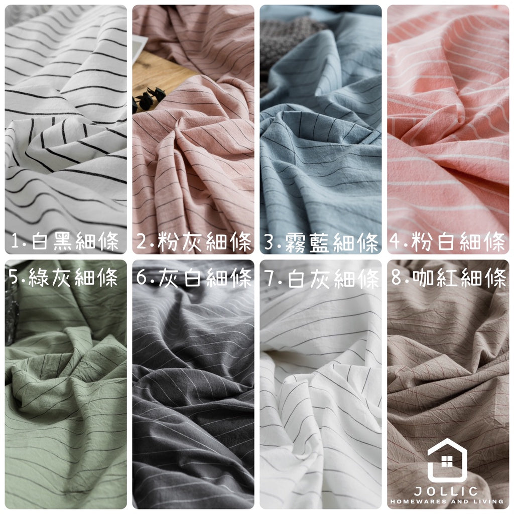 ✨『寢織 – 水洗棉細條紋系列床包組 – 灰白細條紋』✨