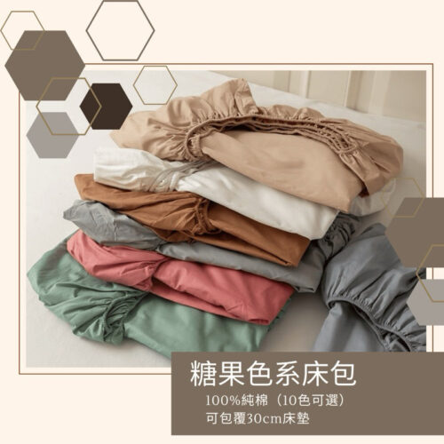 超舒適超繽紛的水洗棉素色暖色系床包(鬆緊帶)。